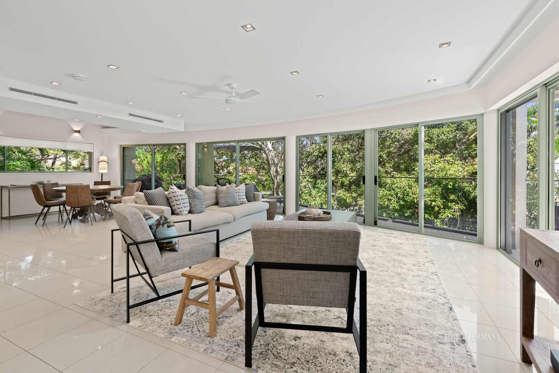 Luxury Living on Hastings Street with Noosa Beach Views This exclusive first-floor apartment on Hastings Street, Noosa, offers a private entrance with no other units on this level. Upon entry, a grand high ceiling, perfect for a chandelier, mirrors the soaring height of the dining area, creating an inviting, luxurious atmosphere. The interior features a soft grey palette with blue accents, complemented by elegant details like an oak dining table, russet leather chairs, and a striking blue and shell sideboard. Expansive sliding doors open to private terraces, seamlessly blending indoor and outdoor living. The sunlit kitchen, with stainless steel and grey stone countertops, features a walk-in pantry and premium appliances. Outside, the natural surroundings offer views of Noosa Main Beach. Additionally, a newly installed imported inclinator provides easy access to the common pool, located at the highest point of the building. The master suite, with a centrally placed oval tub, boasts breathtaking views. This luxurious apartment offers unparalleled privacy, prime location, and exceptional convenience, just steps from Main Beach. "The unbeatable convenience of simply crossing Hastings Street to Main Beach, Timeless luxury awaits at this exclusive Hastings Street address." comments Tom Offermann Real Estate agent Eric Seetoo " 1/81 Hastings Street Noosa Heads Bedrooms 3 | Bathrooms 2 | Garage 1